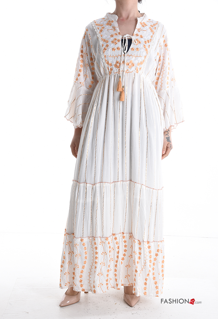 Home > Abbigliamento > Abiti > Abito lungo lurex maniche lunghe Fantasia ricamata con balze scollo a V