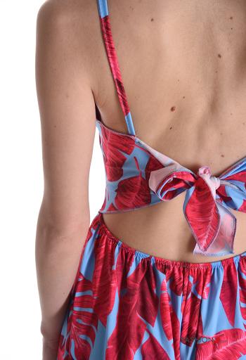 Abito scollato sulla schiena regolabile senza maniche Fantasia con foglie con nodo con spacco