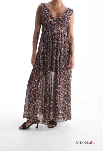 Abito senza maniche scollato sulla schiena Fantasia floreale scollo a V con fodera