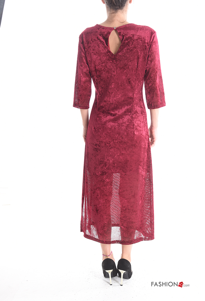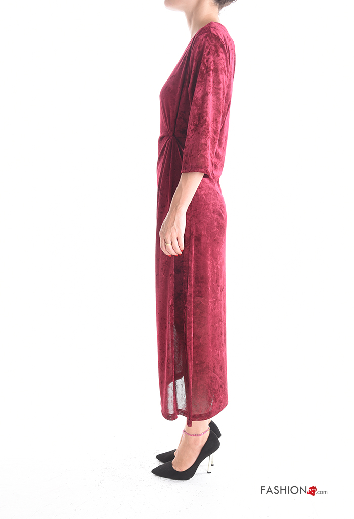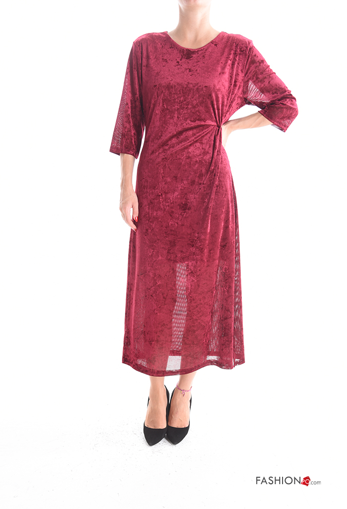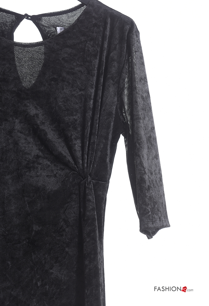 Abito girocollo con nodo con fodera maniche a tre quarti