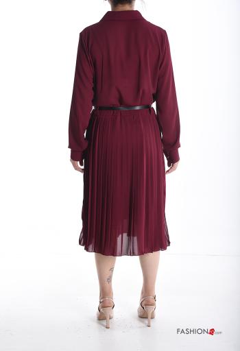 Abito con colletto plissé maniche lunghe con cintura con bottoni