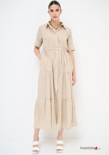 Abito chemisier in Cotone maniche lunghe con colletto con corda con bottoni con cintura con balze