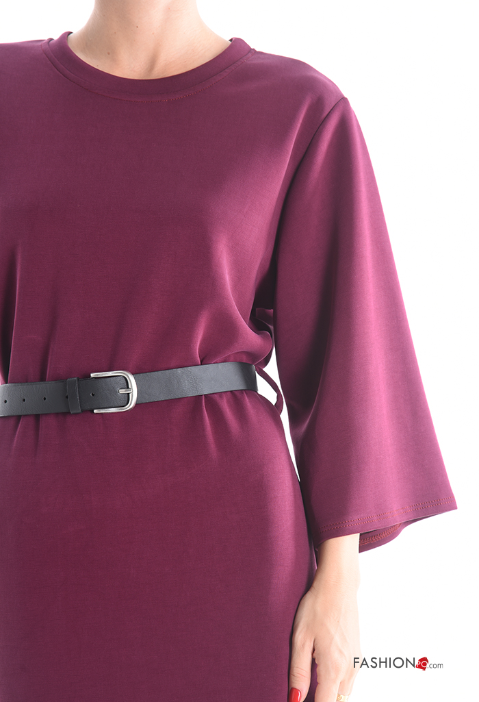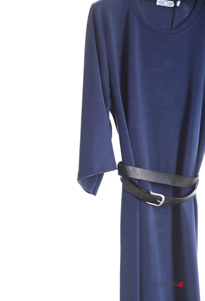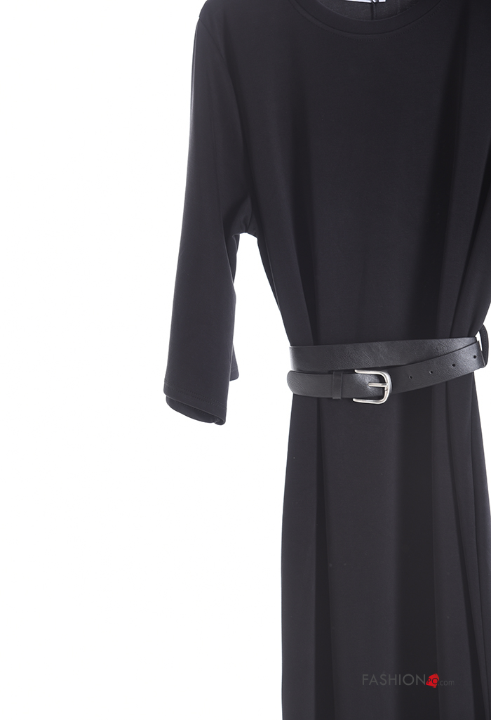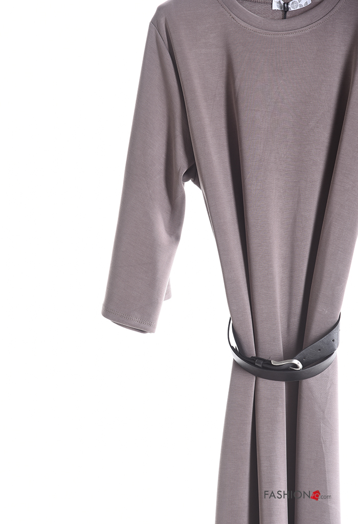 Abito maniche lunghe girocollo con cintura