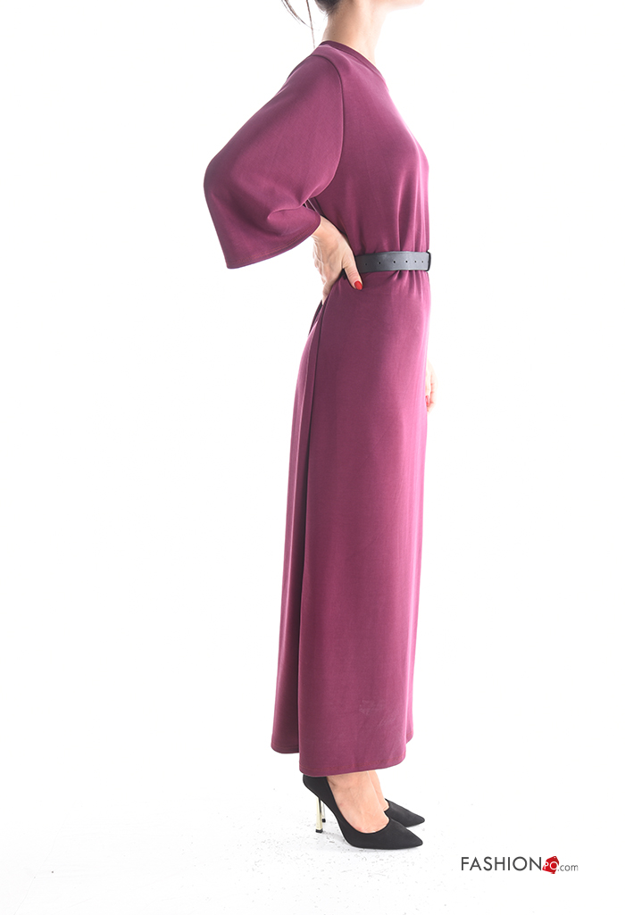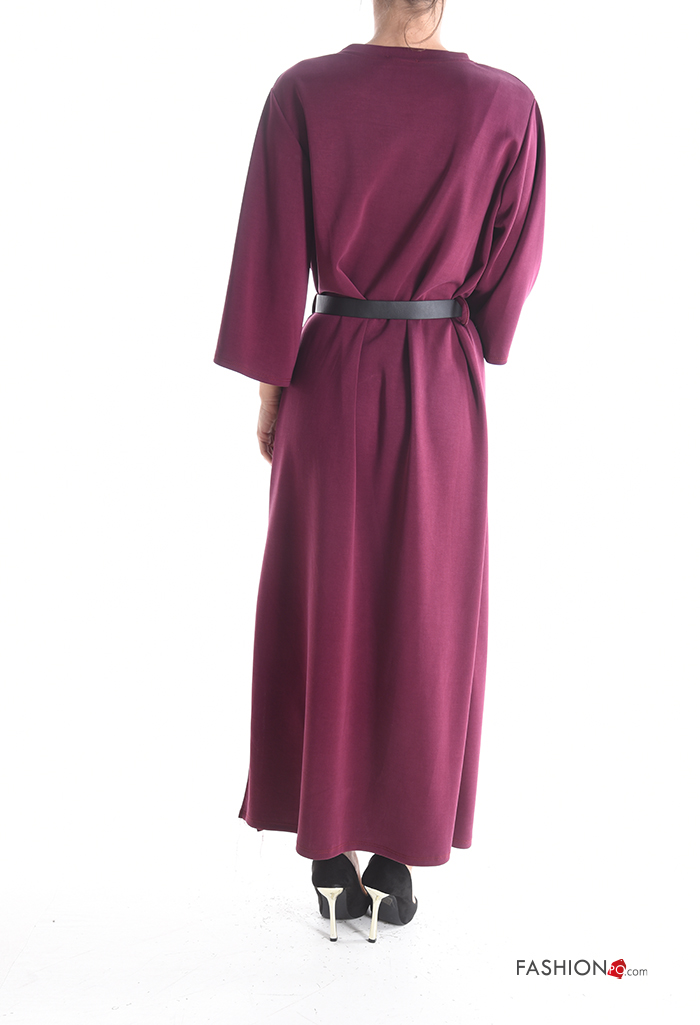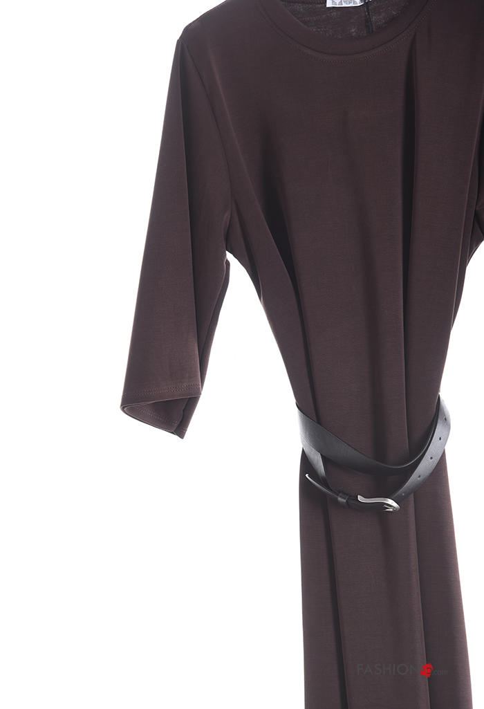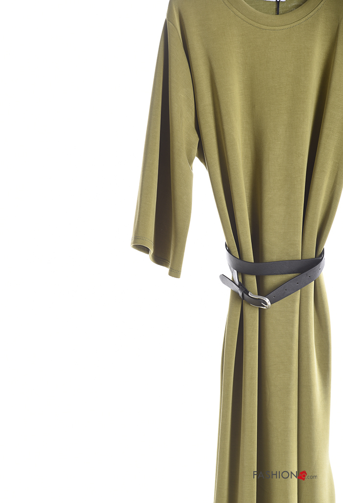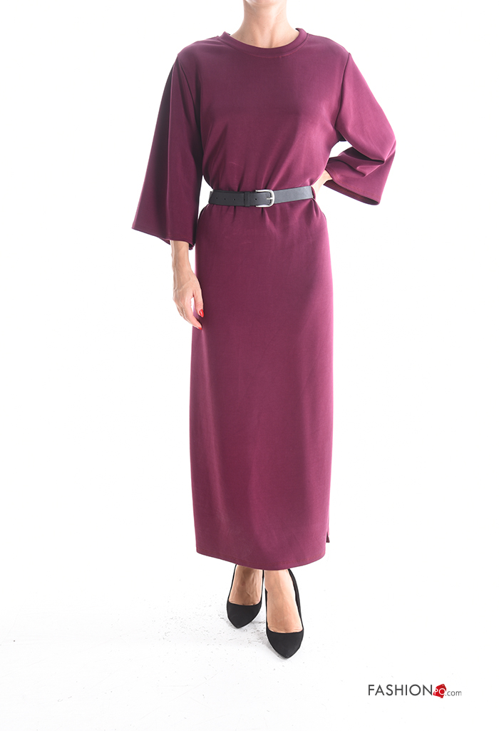 Abito maniche lunghe girocollo con cintura