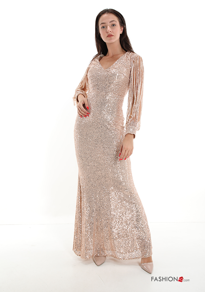 Abito lungo con paillettes scollo a V