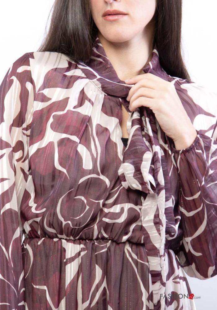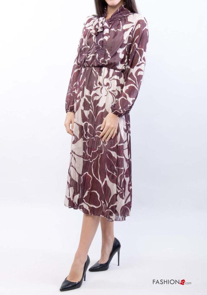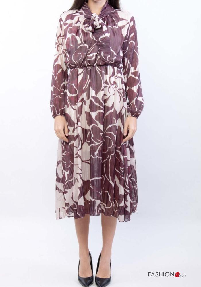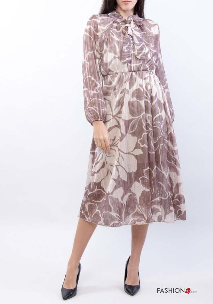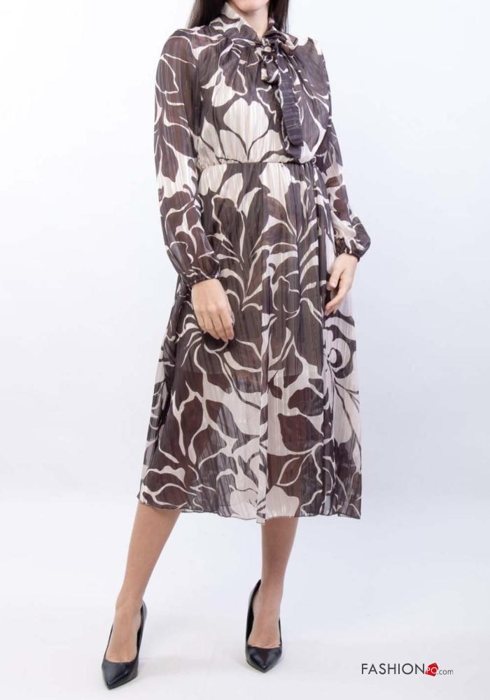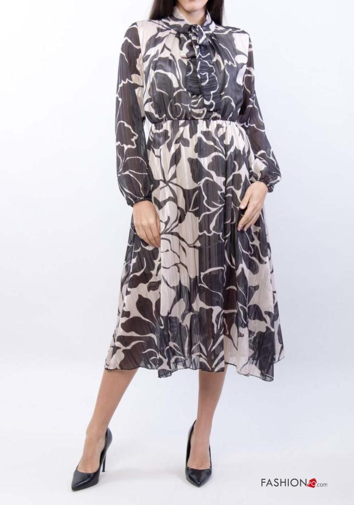 Abito maniche lunghe Fantasia floreale con fiocco