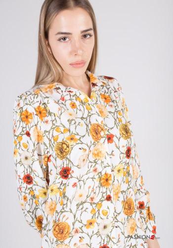Abito al ginocchio maniche lunghe con colletto Fantasia floreale