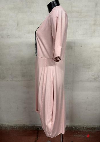 Abito in Cotone asimmetrico Fantasia ricamata maniche a tre quarti