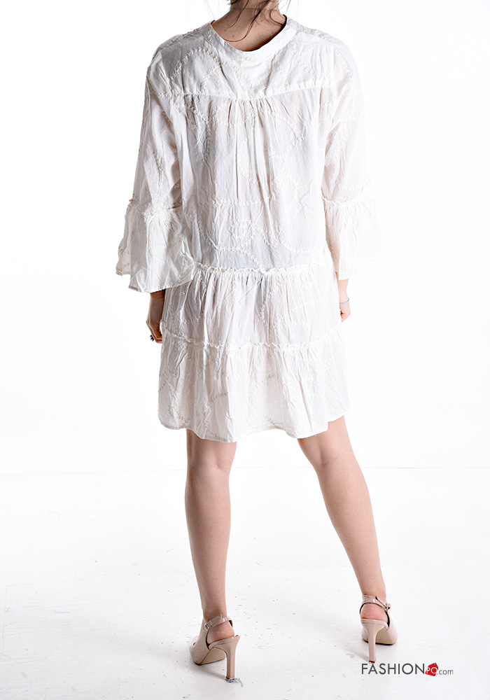 Abito in Cotone maniche volant maniche lunghe Fantasia ricamata con balze con bottoni