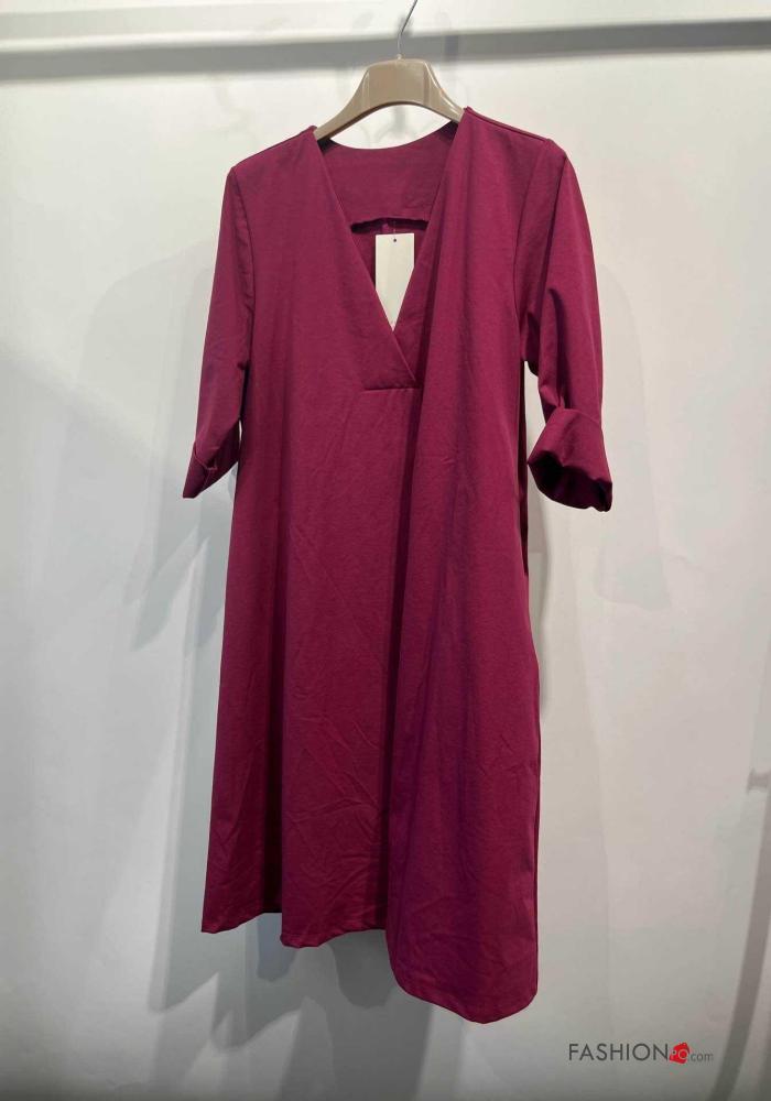 Home > Abbigliamento > Abiti > Abito in Cotone maniche lunghe al ginocchio con tasche scollo a V