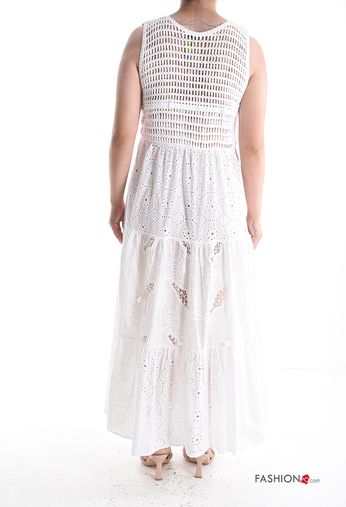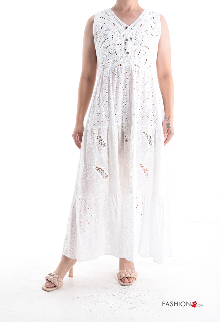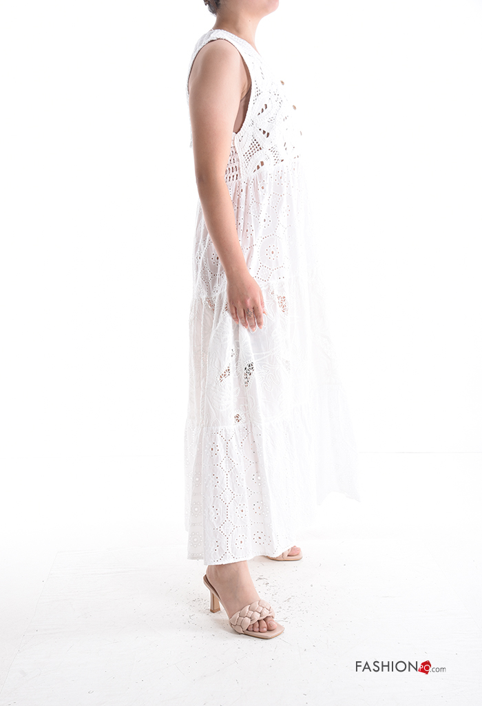 Abito in Cotone con bottoni in pizzo sangallo