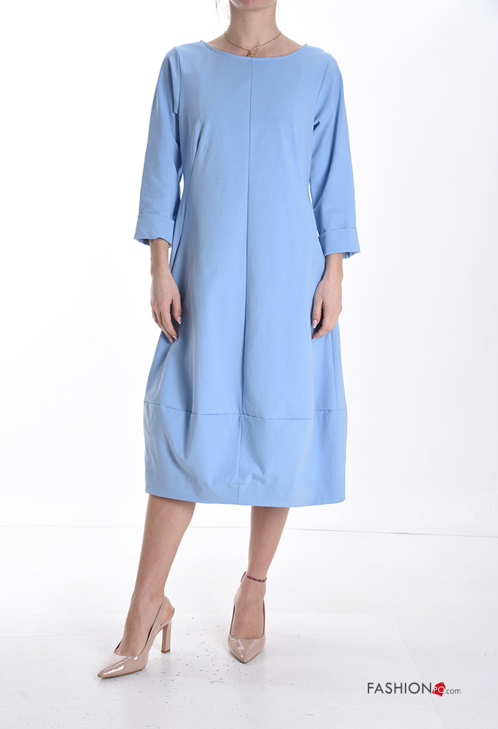 Abito in Cotone maniche lunghe girocollo con tasche