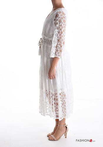 Home > Abbigliamento > Abiti > Abito in Cotone pizzo maniche a tre quarti con balze scollo a V