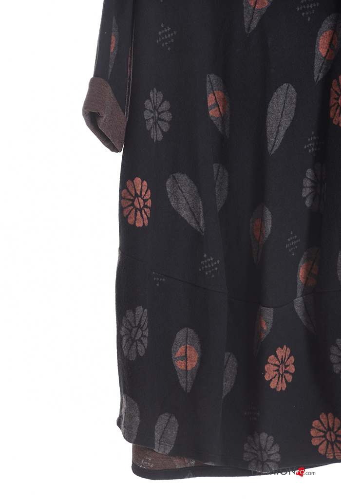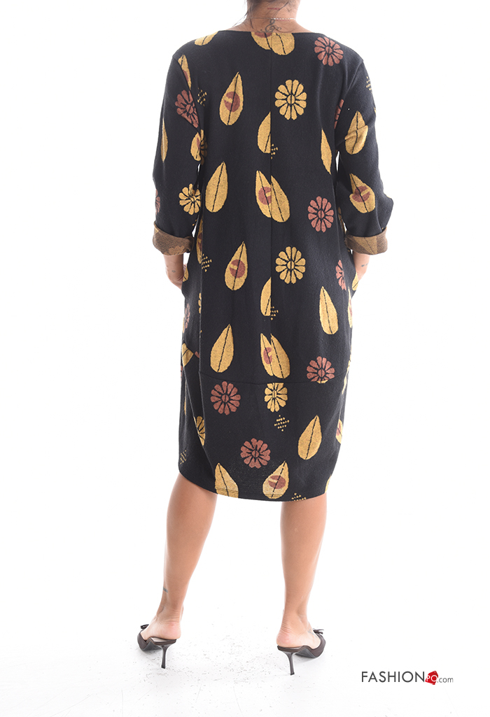 Home > Abbigliamento > Abiti > Abito in Cotone maniche lunghe girocollo Fantasia stampata con tasche