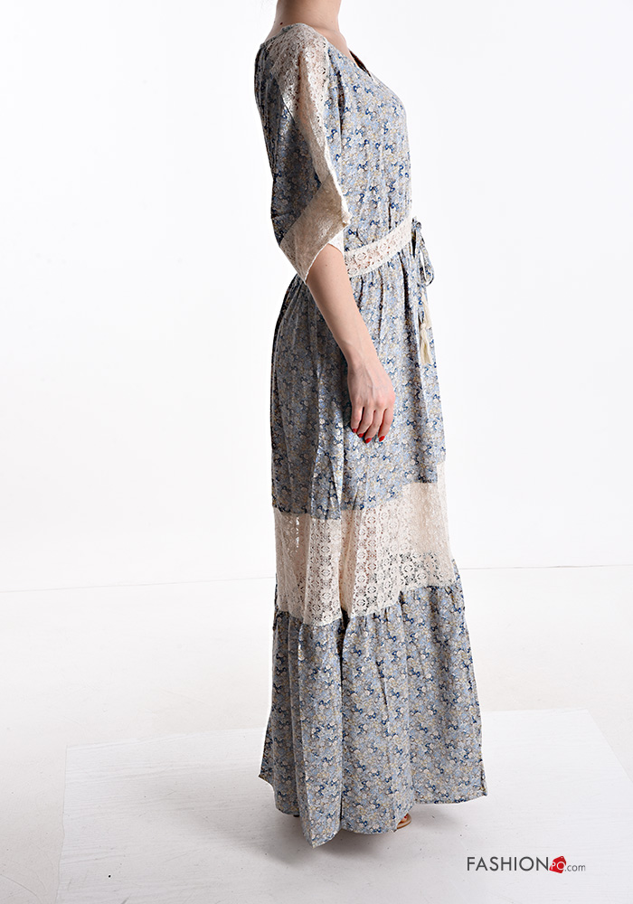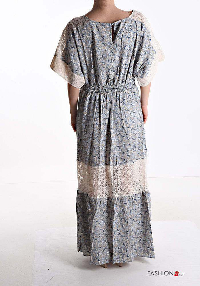 Abito in Cotone pizzo lungo Fantasia floreale con bottoni
