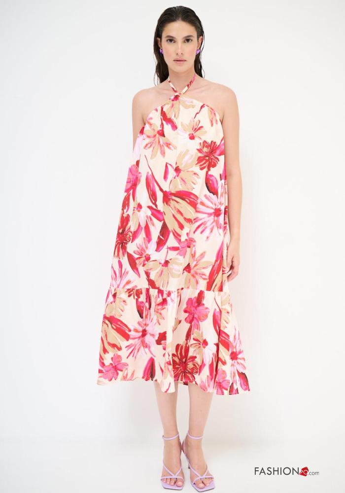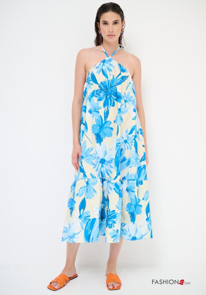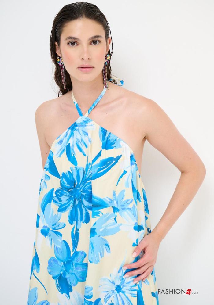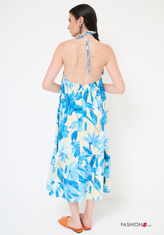 Abito in Cotone senza maniche scollato sulla schiena Fantasia floreale con fiocco