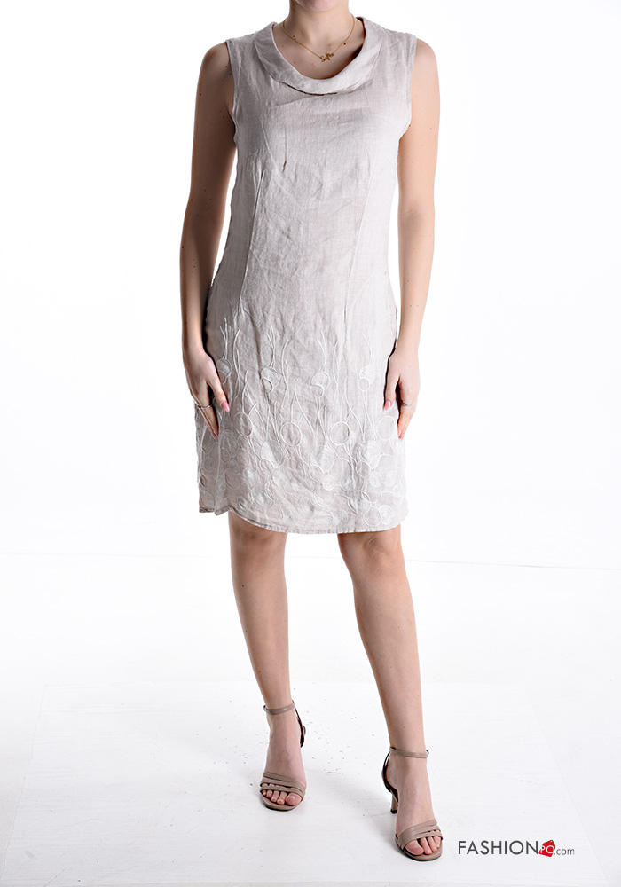 Abito in Lino al ginocchio senza maniche girocollo con tasche