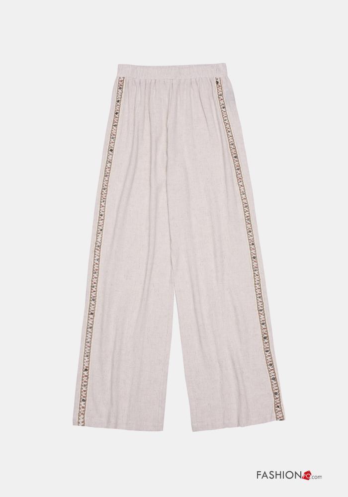 Pantalone in Lino wide leg lungo con tasche con elastico