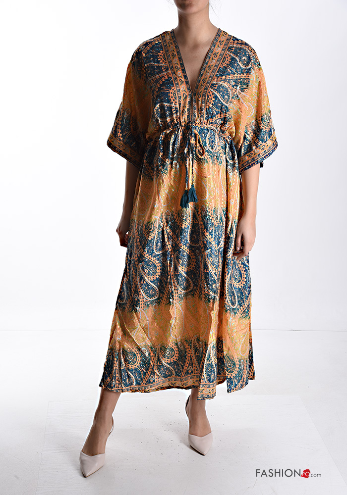Abito in Seta lungo maniche corte scollato sulla schiena scollo a V scollo profondo