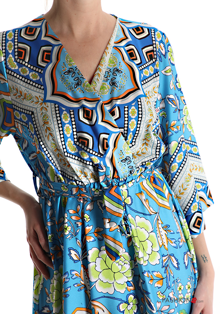 Abito lungo Fantasia stampata con fusciacca con balze scollo a V