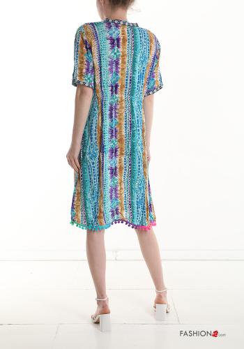 Abito maniche corte al ginocchio Fantasia stampata scollo a V