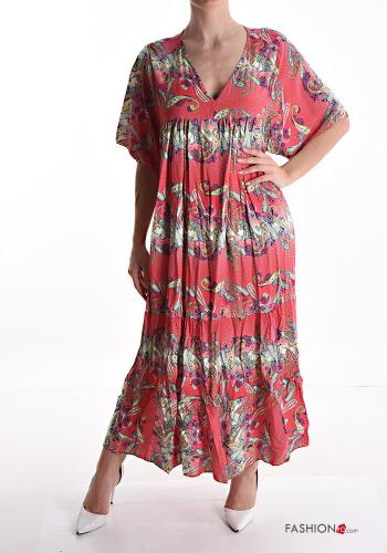 Abito maniche corte lungo Fantasia stampata con balze scollo a V