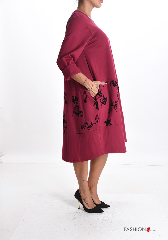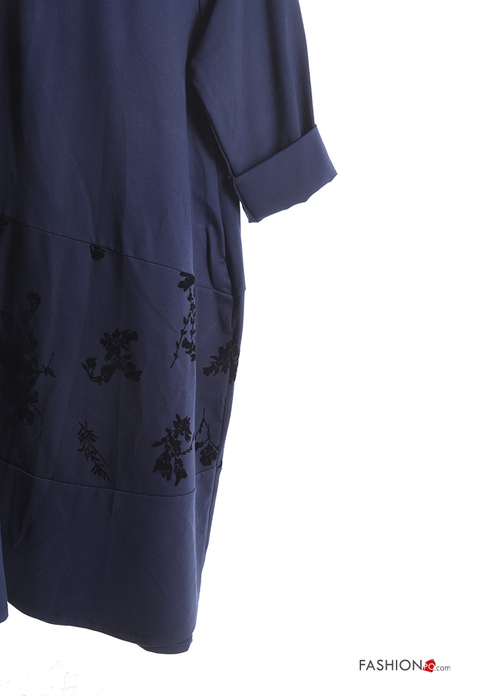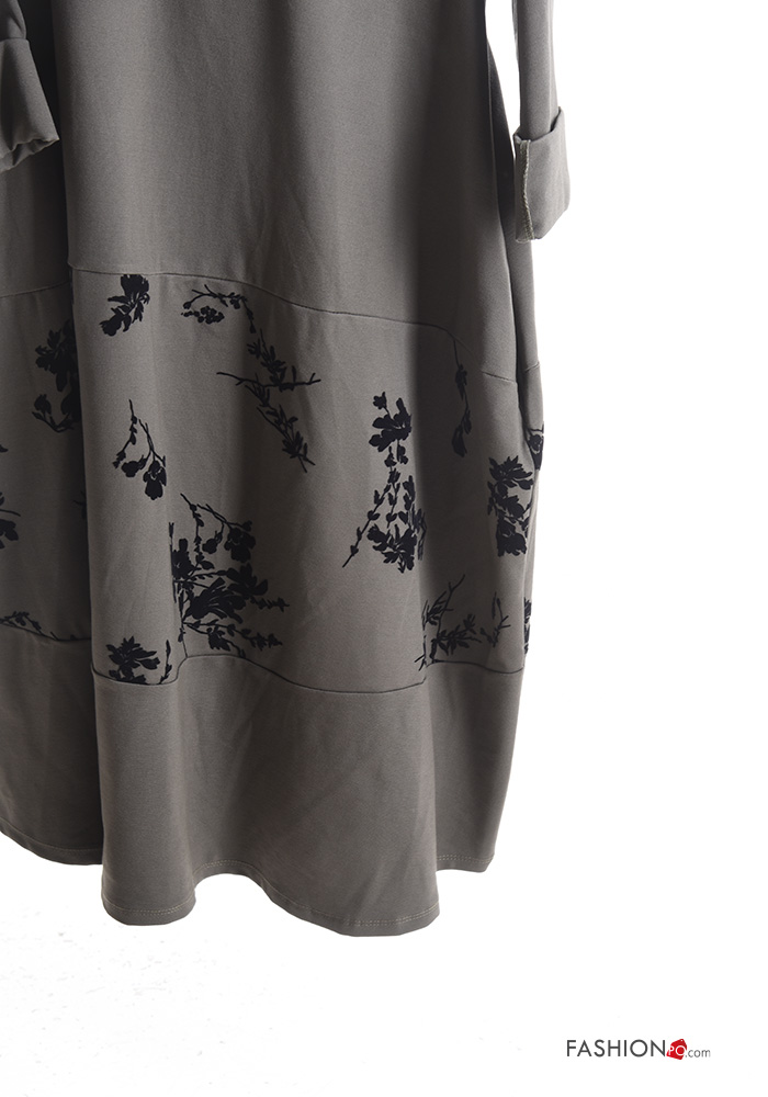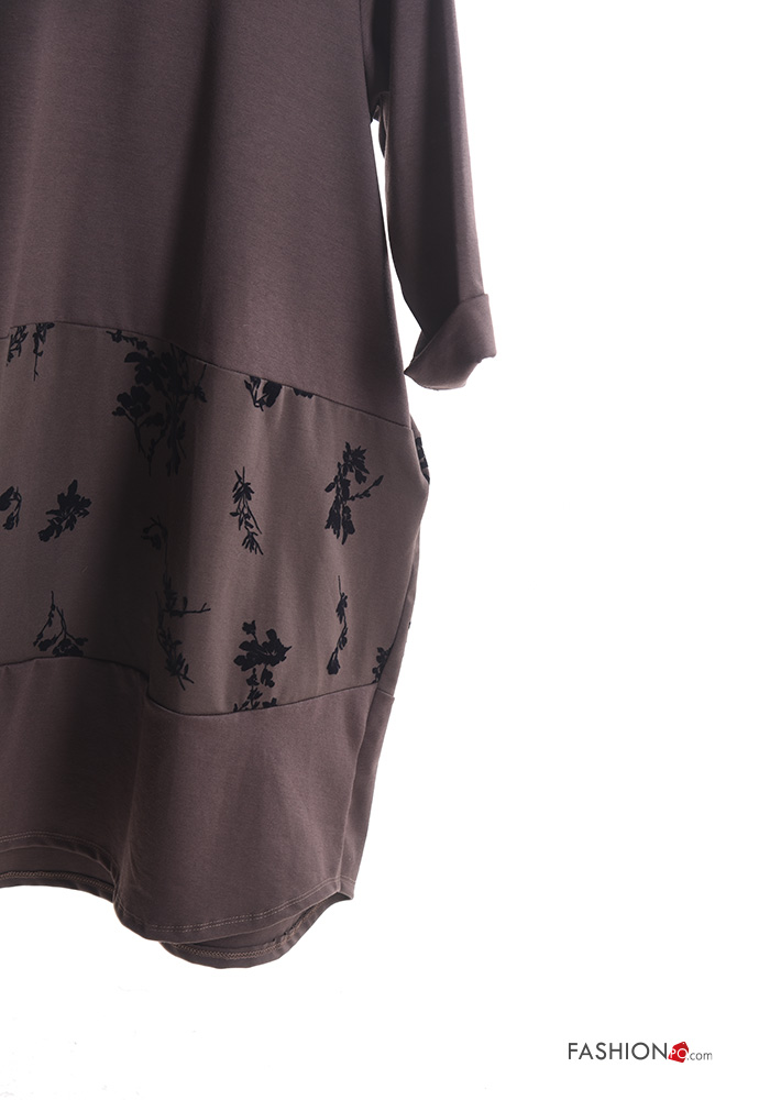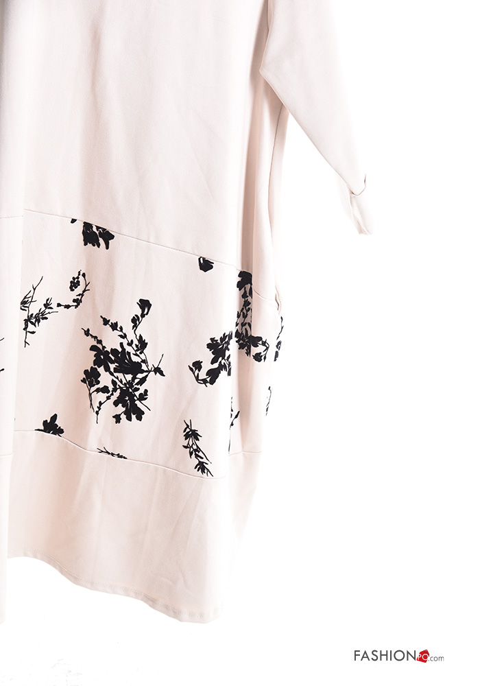 Abito oversize girocollo Fantasia stampata con tasche