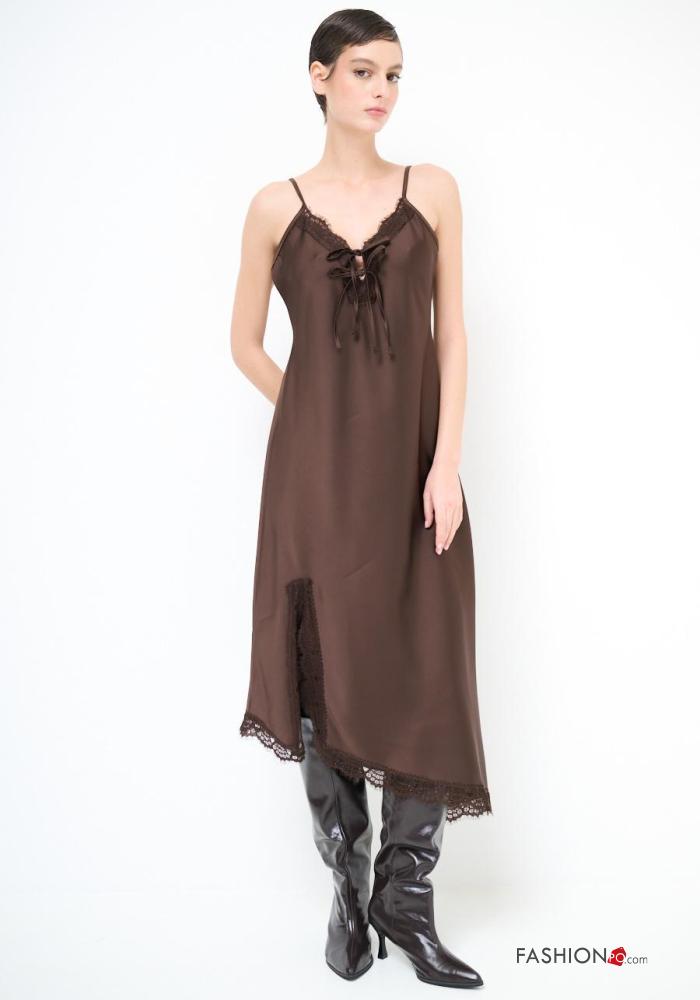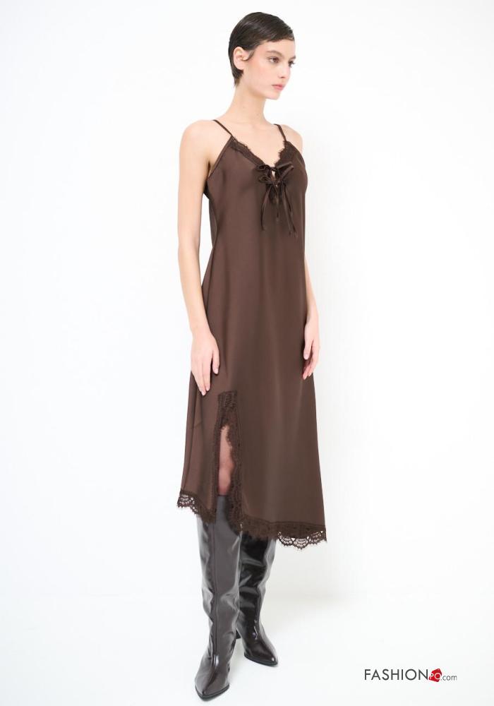 Abito scollato sulla schiena pizzo senza maniche con fiocco con spacco