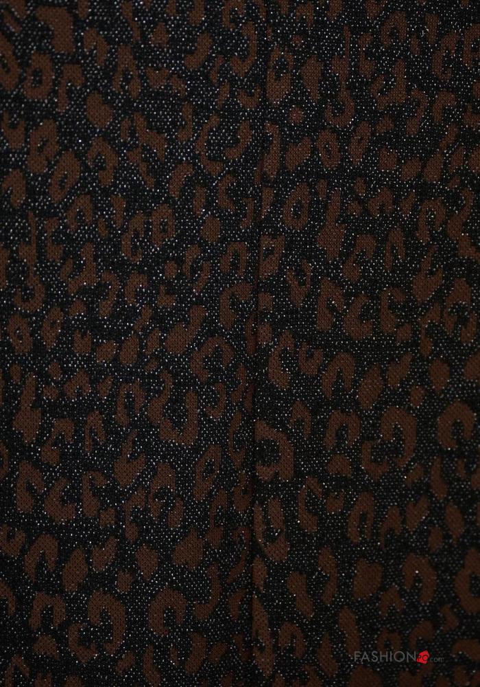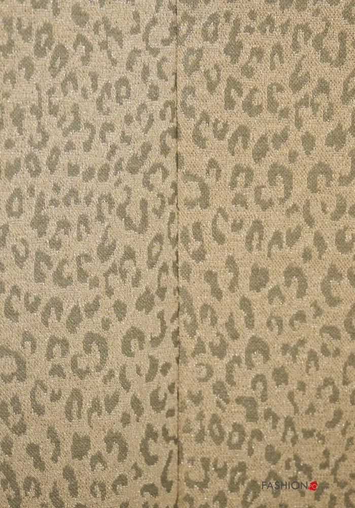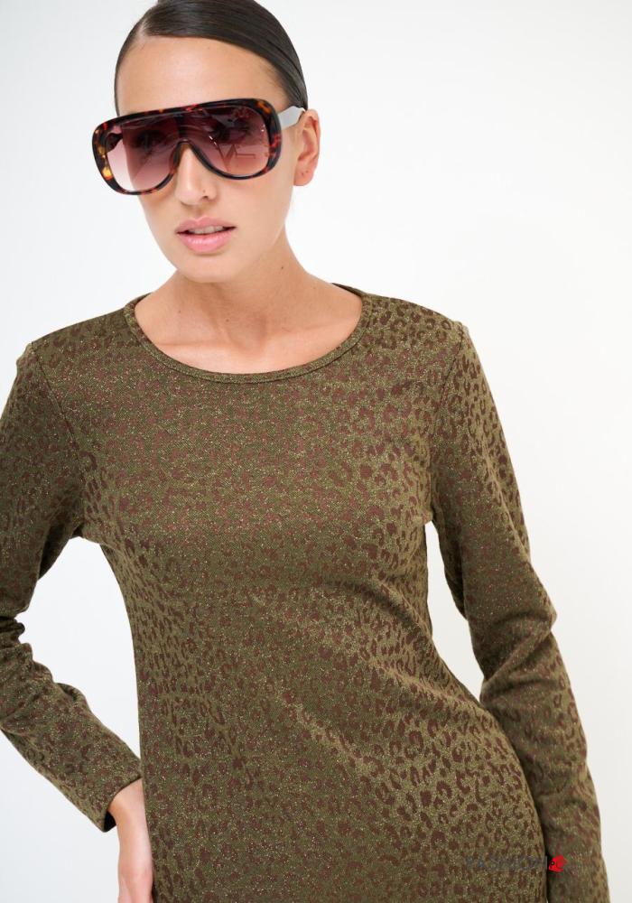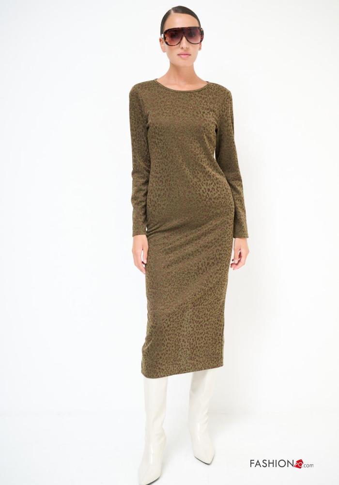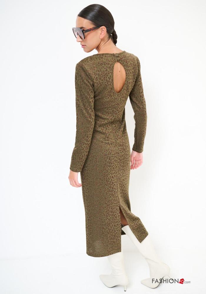Abito scollato sulla schiena maniche lunghe girocollo Fantasia animalier con spacco