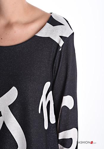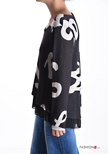 Maglietta a manica lunga girocollo chiffon lurex maniche lunghe Fantasia stampata
