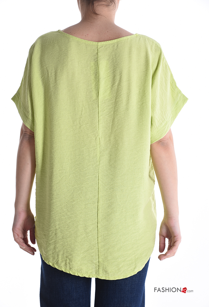 Home > Abbigliamento > Camicie e Bluse > Blusa maniche corte girocollo Fantasia cuore con strass