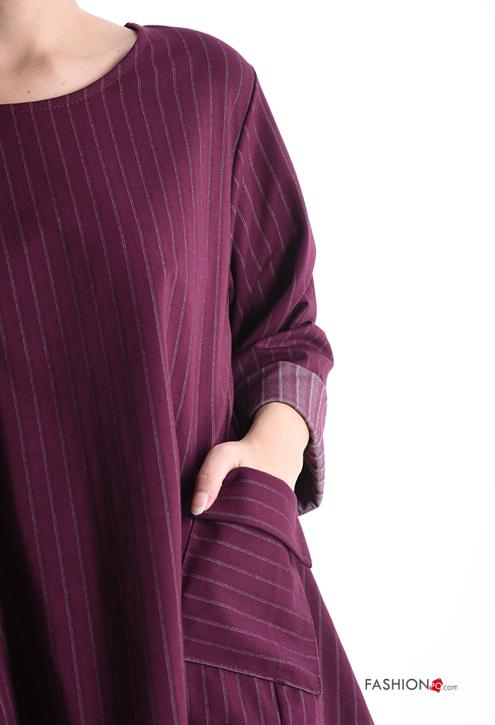 Blusa maniche lunghe girocollo Fantasia righe con tasche
