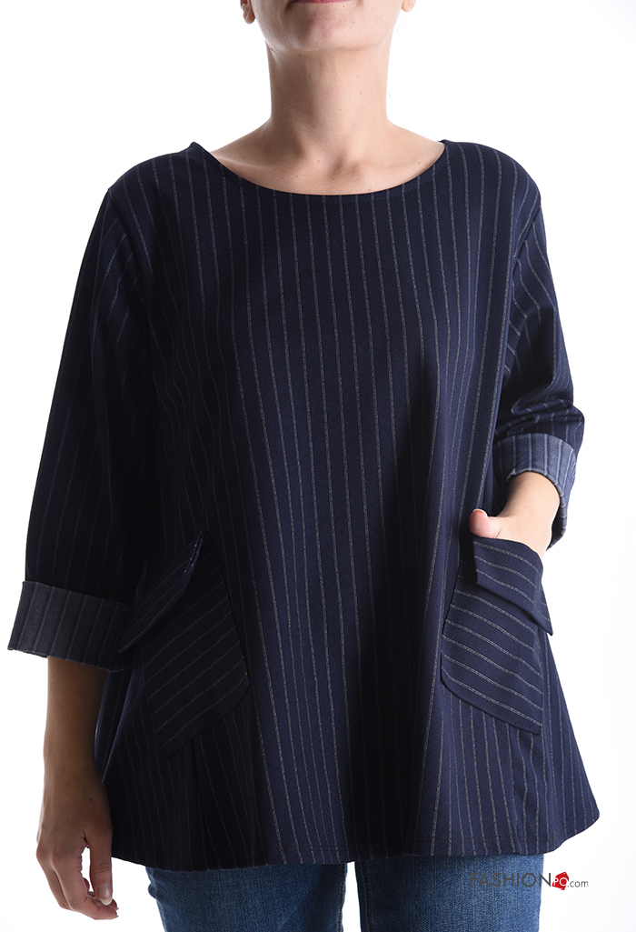 Home > Abbigliamento > Camicie e Bluse > Blusa maniche lunghe girocollo Fantasia righe con tasche