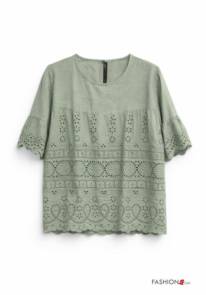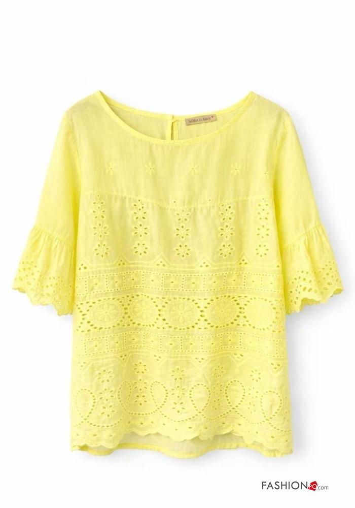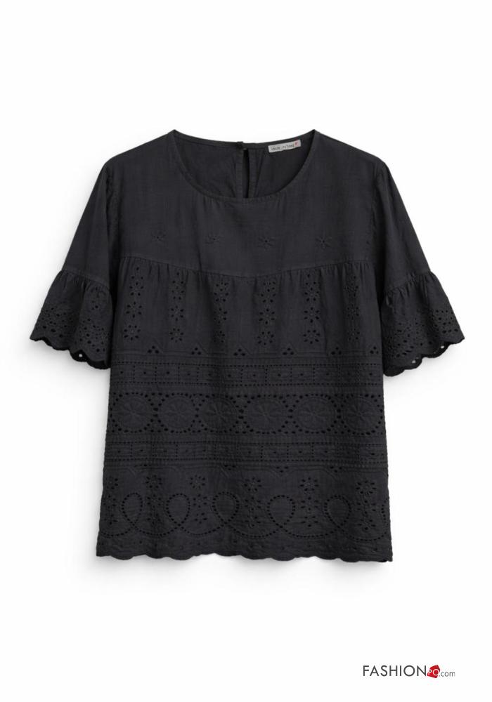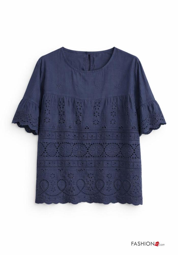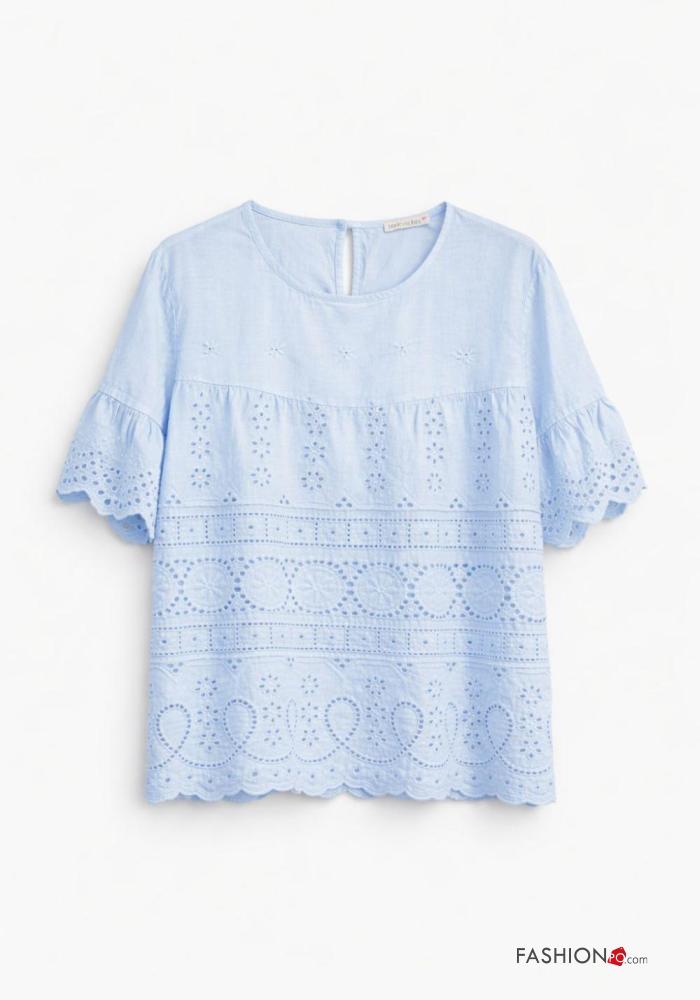 Home > Abbigliamento > Camicie e Bluse > Blusa in Cotone con balze in pizzo sangallo