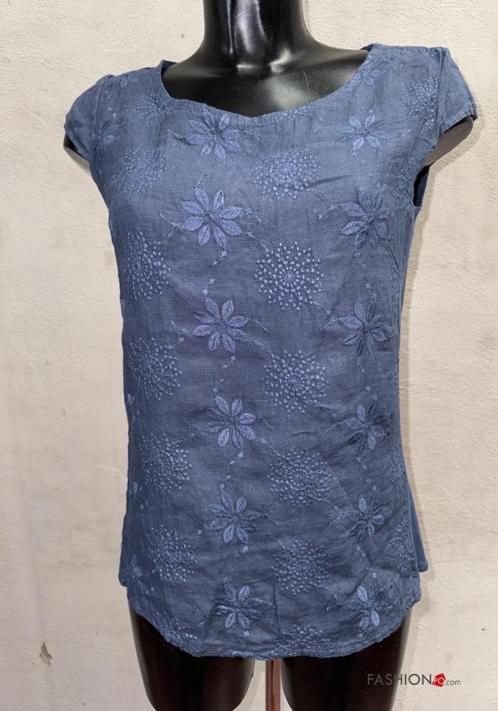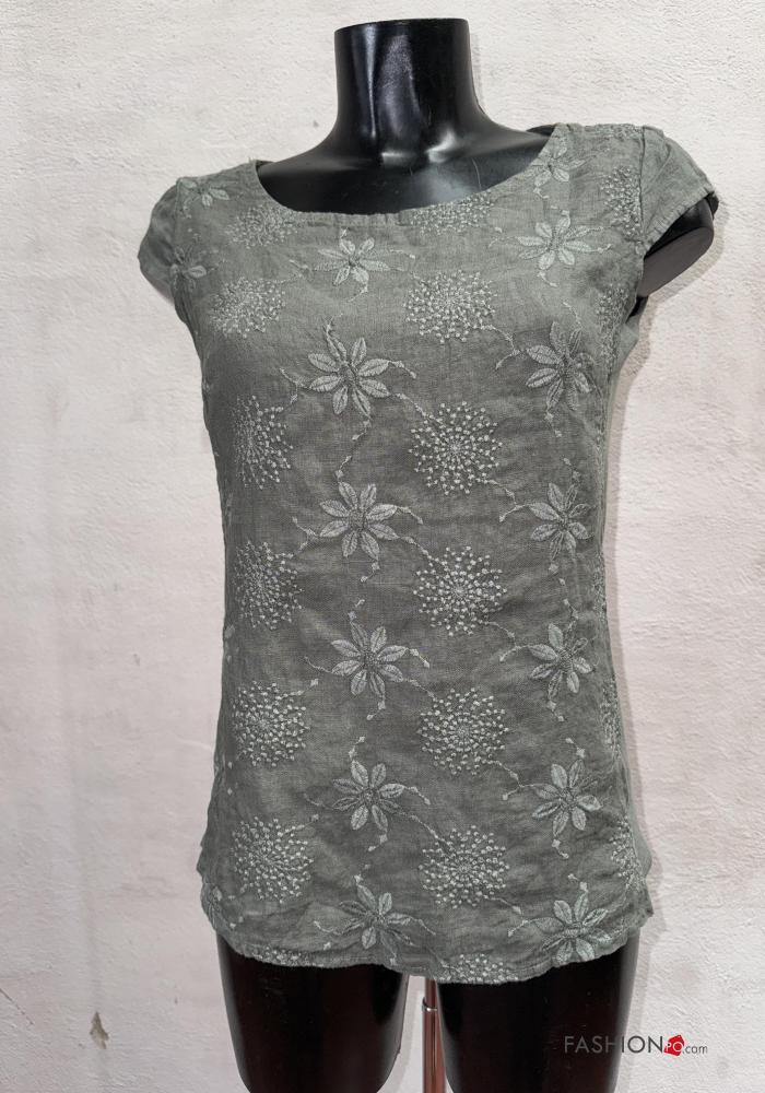 Home > Abbigliamento > Camicie e Bluse > Blusa in Lino maniche corte girocollo Fantasia ricamata