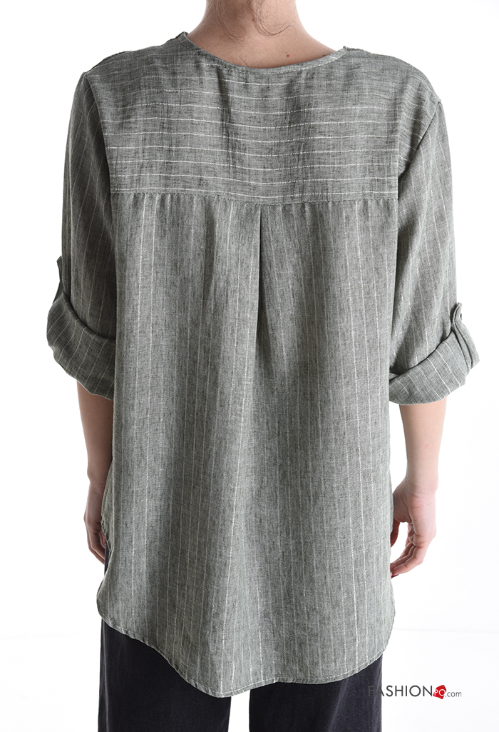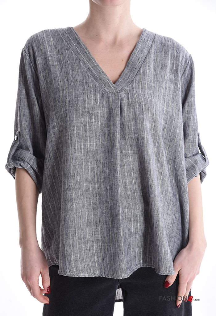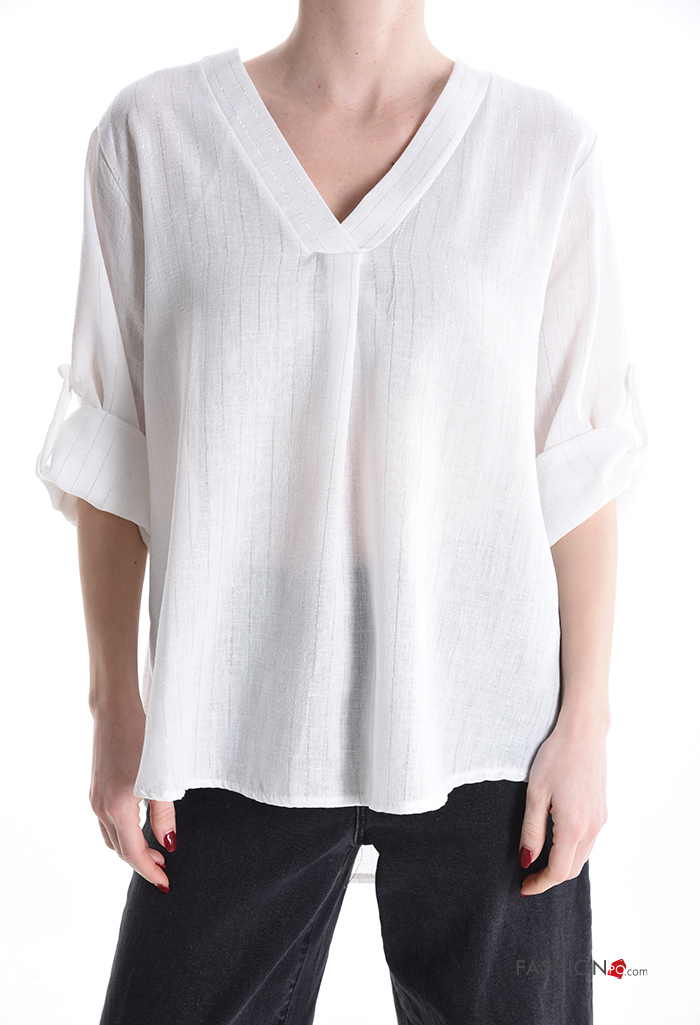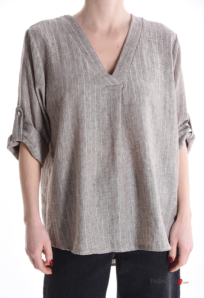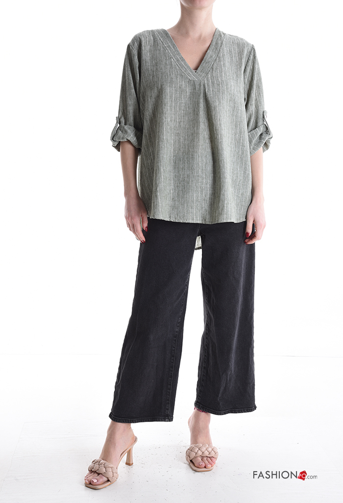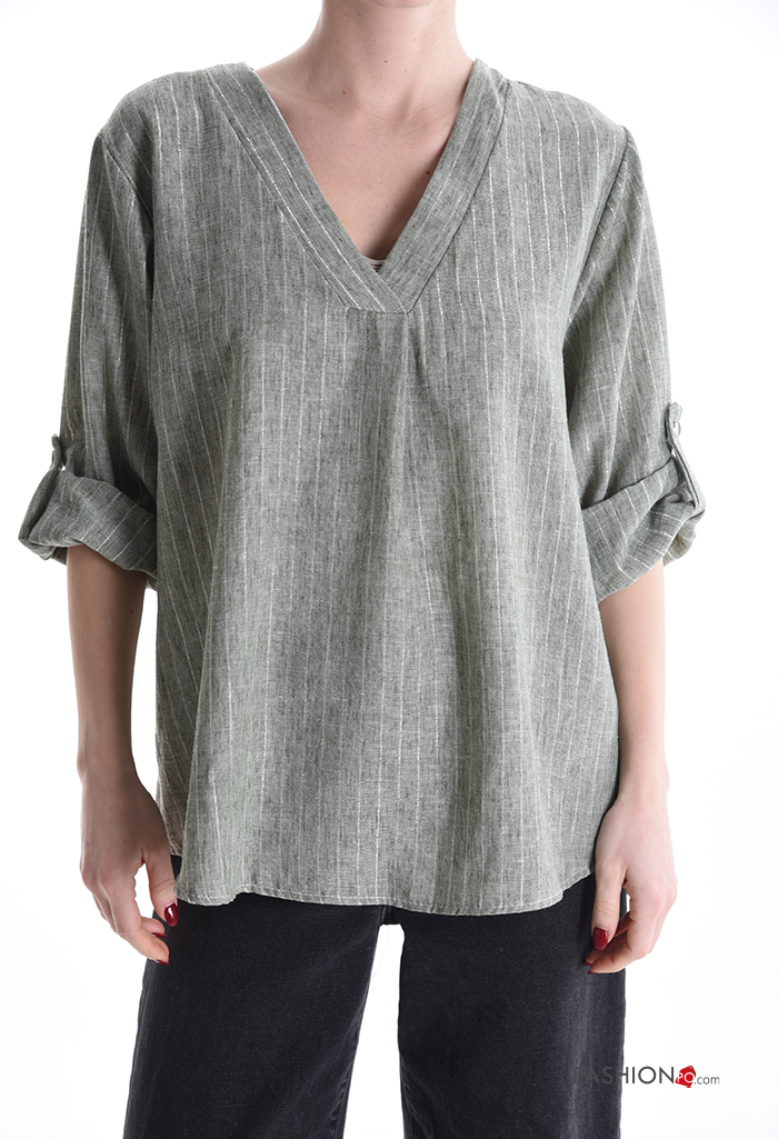 Blusa Fantasia righe scollo a V maniche a tre quarti
