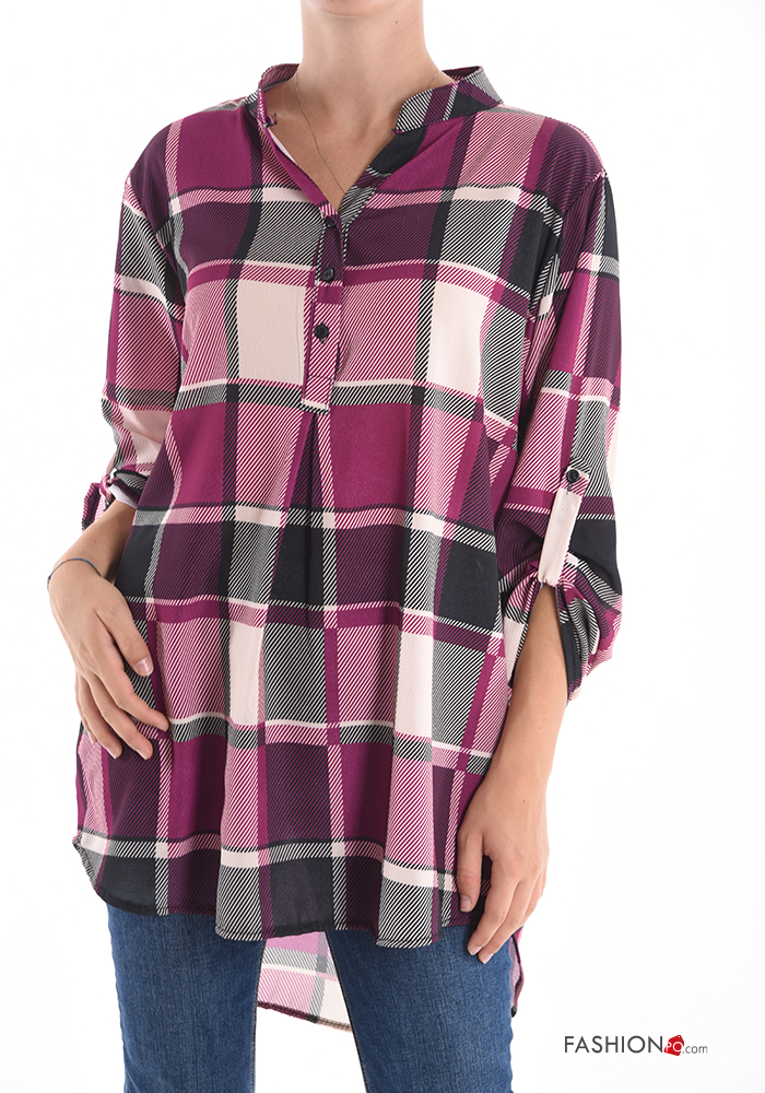 Home > Abbigliamento > Camicie e Bluse > Blusa Fantasia quadrettata vichy con bottoni scollo a V