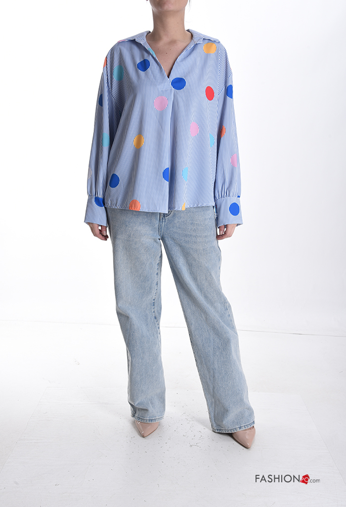 Home > Abbigliamento > Camicie e Bluse > Blusa maniche lunghe con colletto Fantasia mista scollo a V