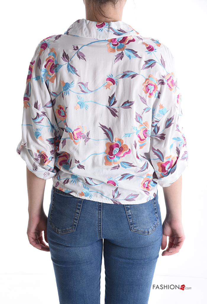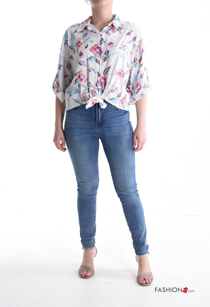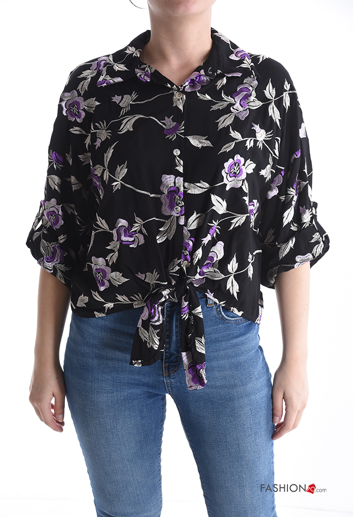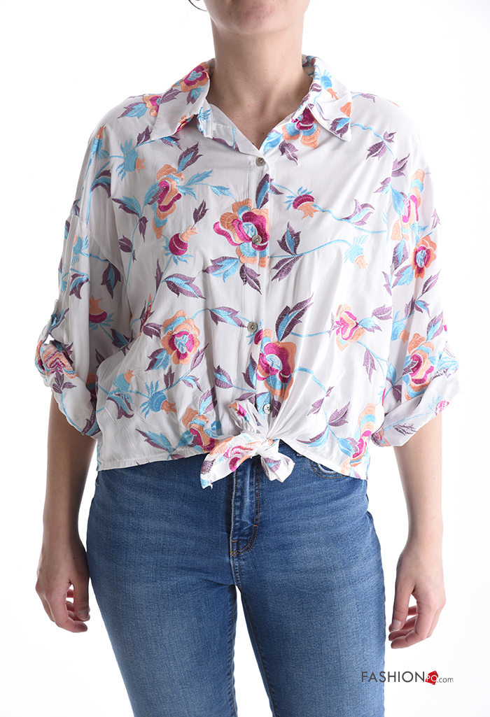 Home > Abbigliamento > Camicie e Bluse > Camicia con colletto Fantasia floreale con bottoni maniche a tre quarti