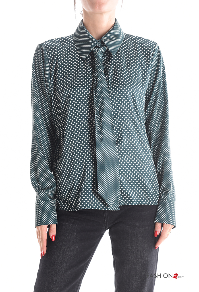 Home > Abbigliamento > Camicie e Bluse > Camicia maniche lunghe con colletto Fantasia pois con bottoni