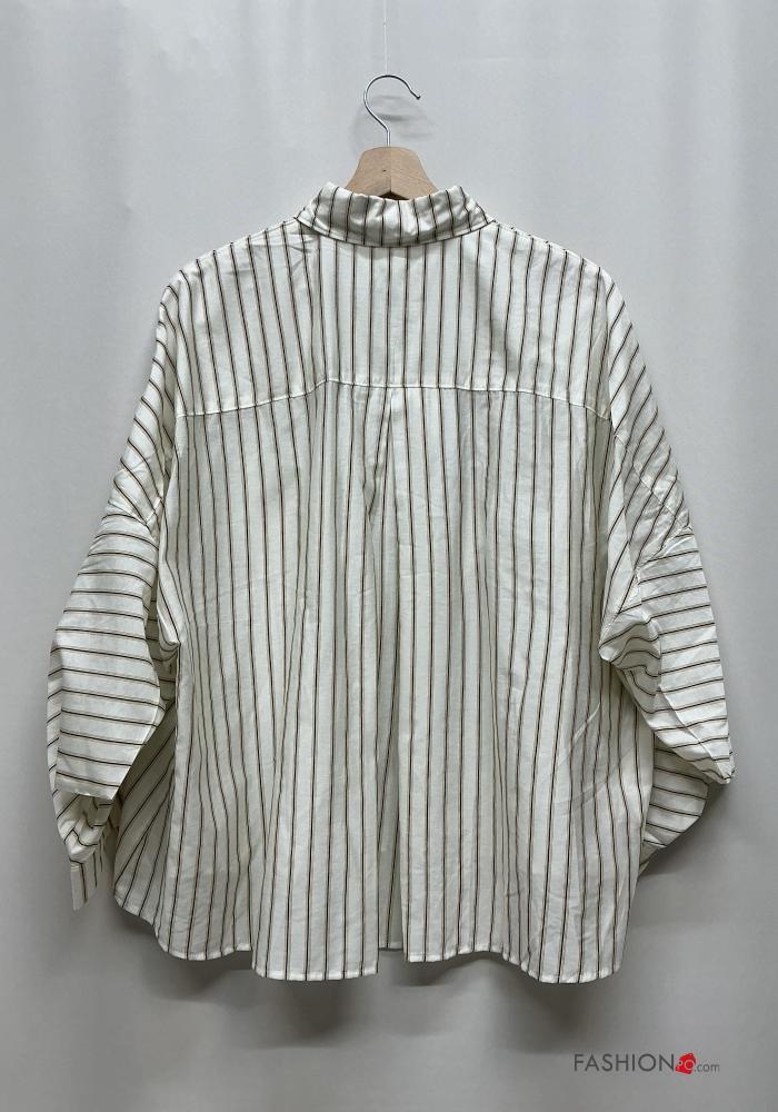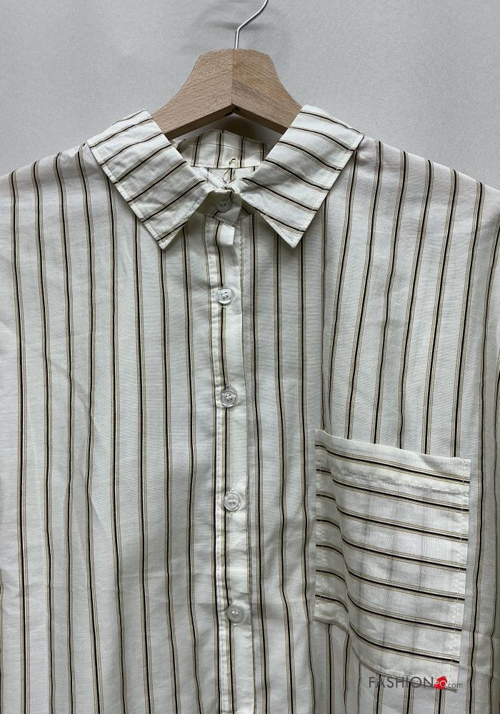 Home > Abbigliamento > Camicie e Bluse > Camicia maniche lunghe con colletto Fantasia righe con bottoni con tasche