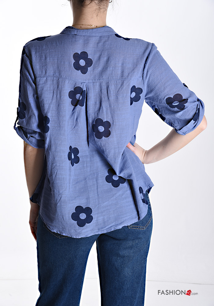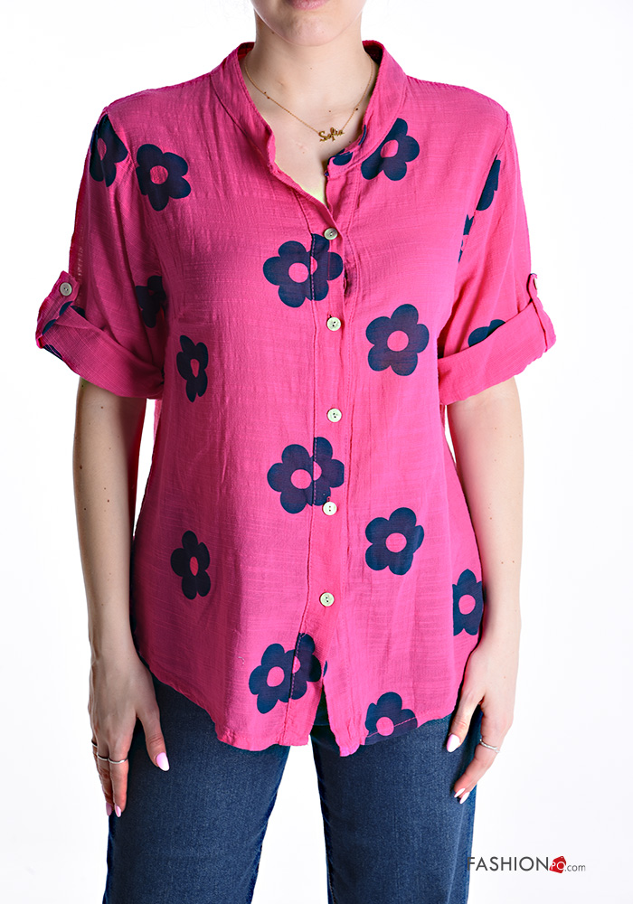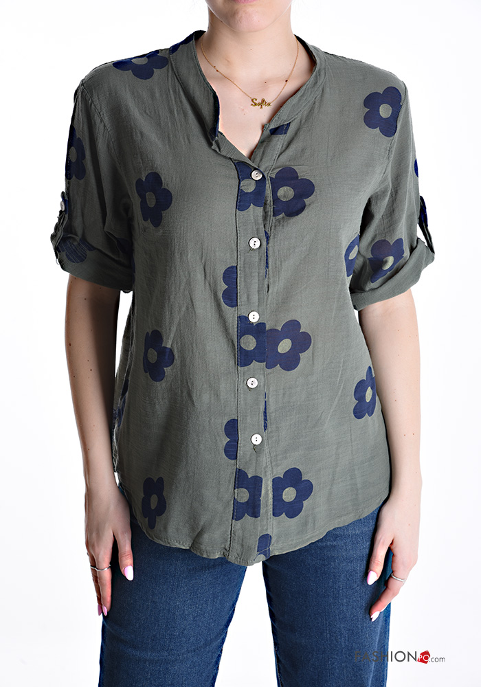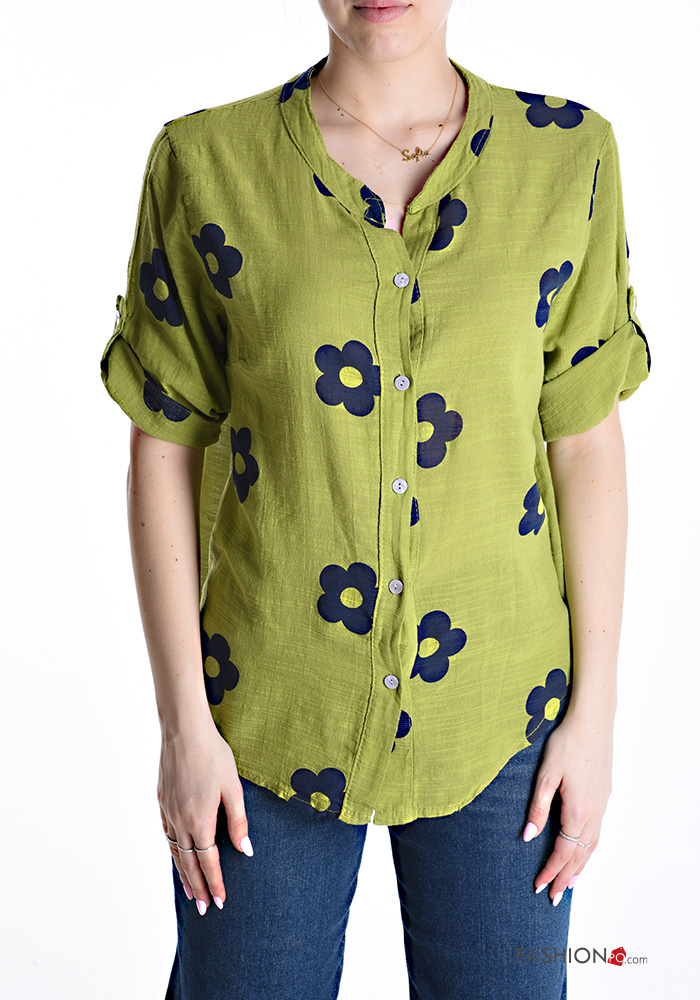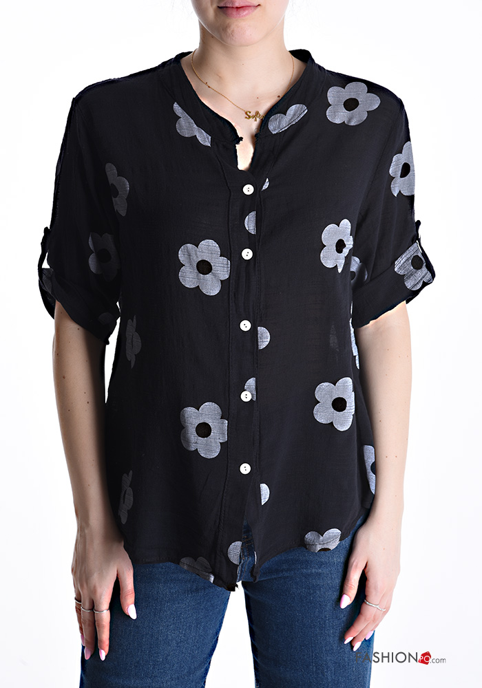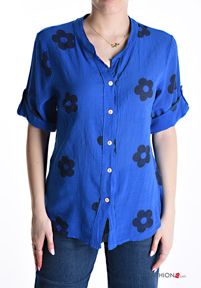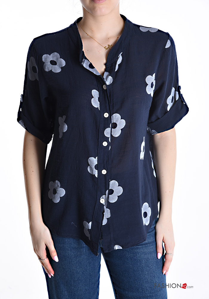 Home > Abbigliamento > Camicie e Bluse > Camicia in Cotone maniche corte Fantasia floreale con bottoni