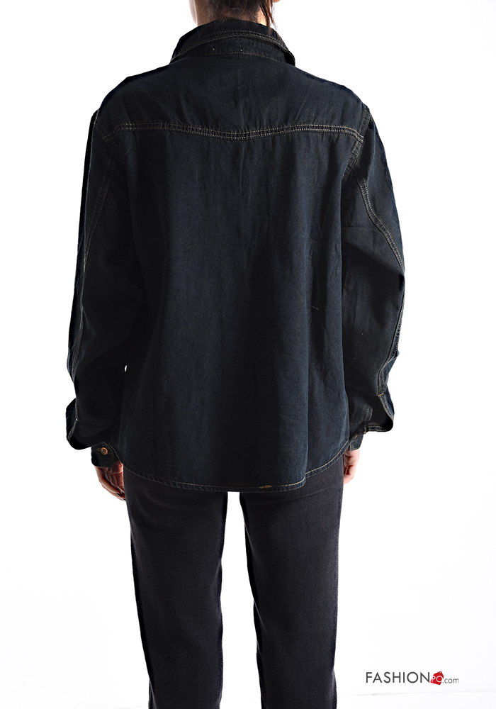 Camicia in Cotone con colletto denim maniche lunghe con tasche