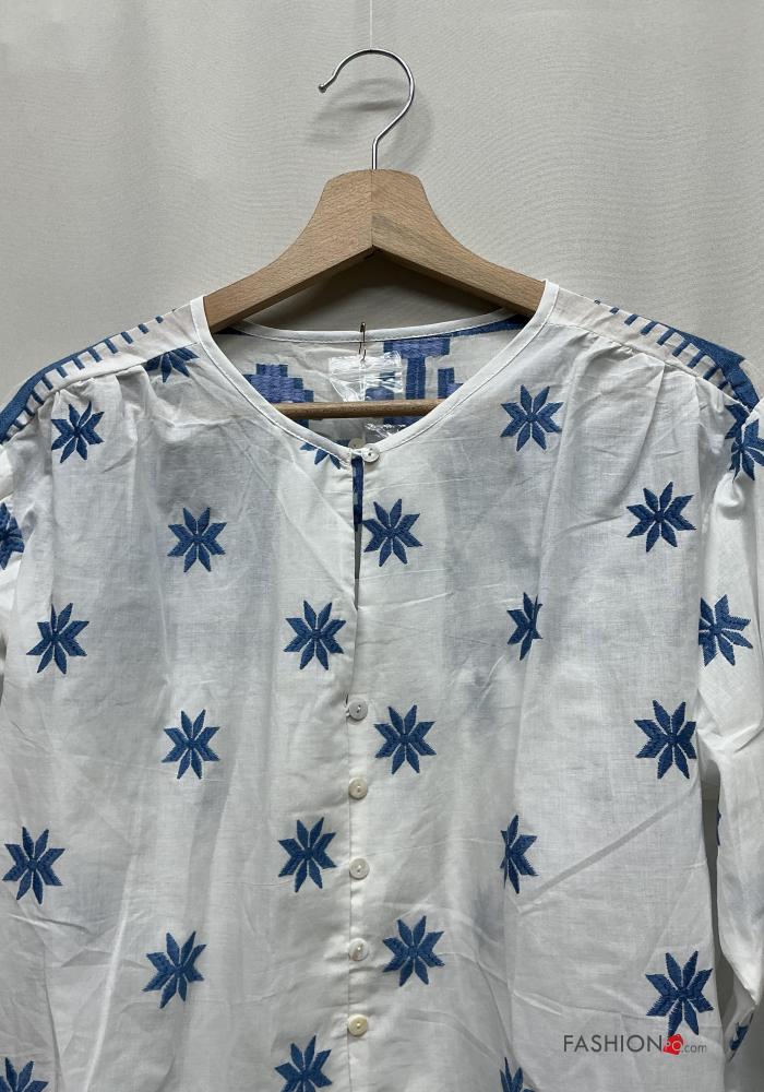 Home > Abbigliamento > Camicie e Bluse > Camicia in Cotone maniche lunghe girocollo Fantasia ricamata con bottoni