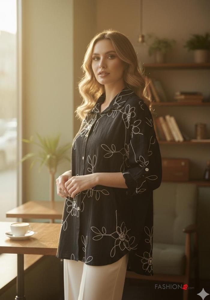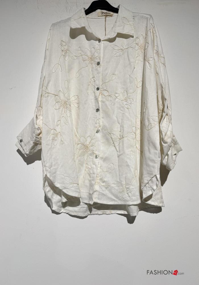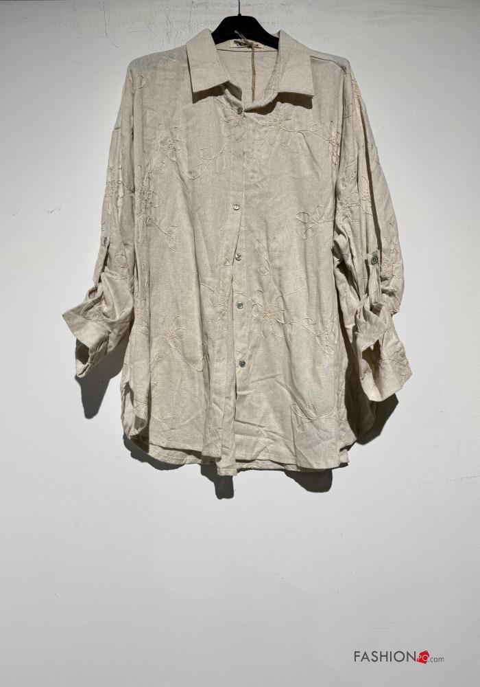 Home > Abbigliamento > Camicie e Bluse > Camicia in Lino con colletto Fantasia ricamata con bottoni