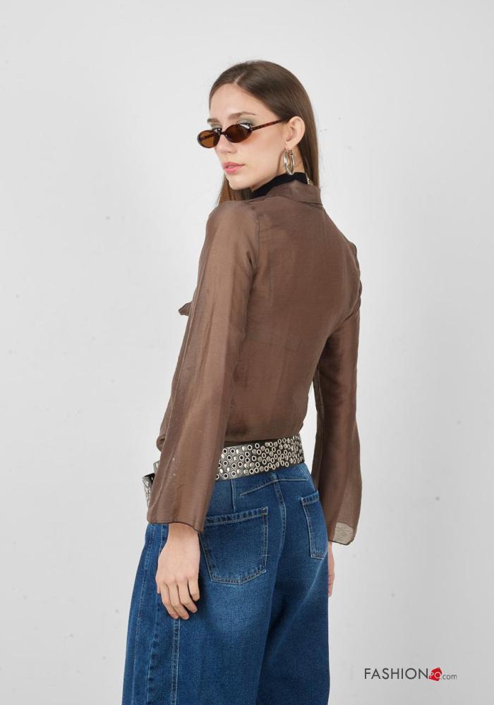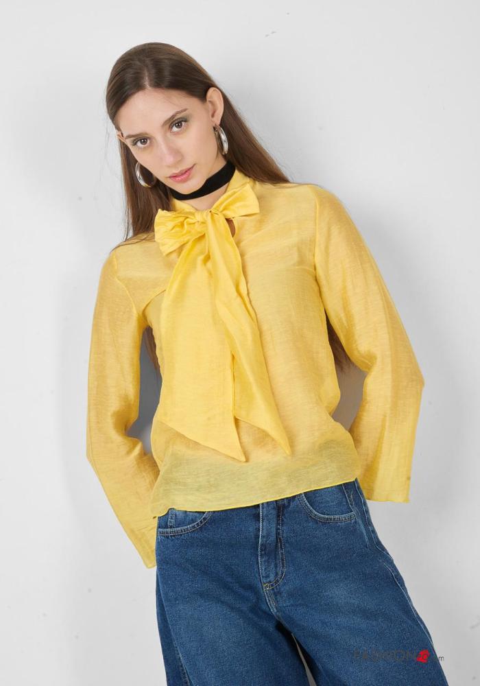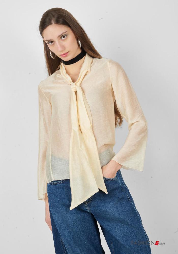 Home > Abbigliamento > Camicie e Bluse > Blusa in Lino maniche lunghe con fiocco scollo a V