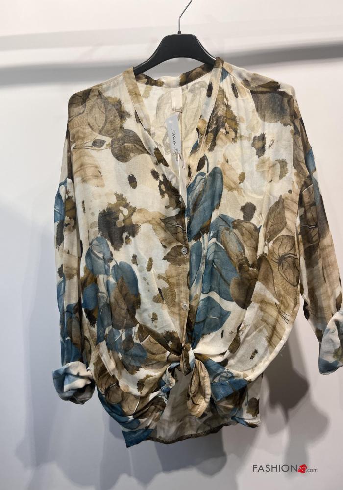 Camicia in Misto Lana maniche lunghe Fantasia floreale con bottoni