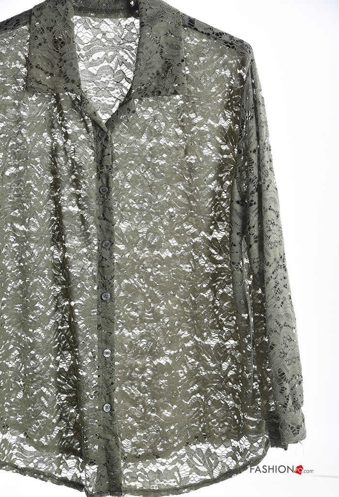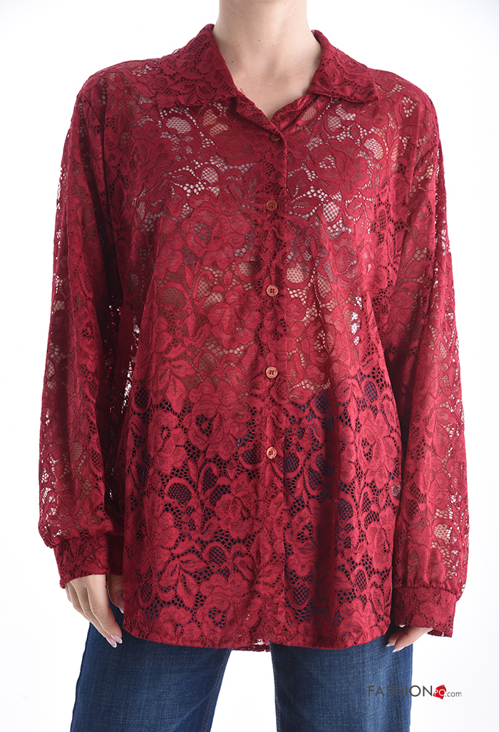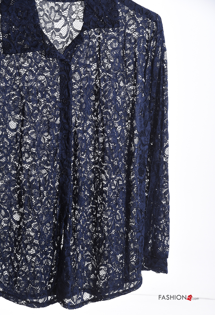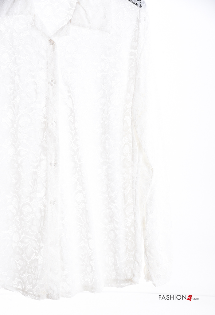 Camicia con colletto pizzo maniche lunghe Fantasia ricamata con bottoni