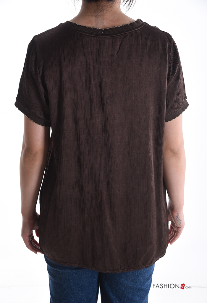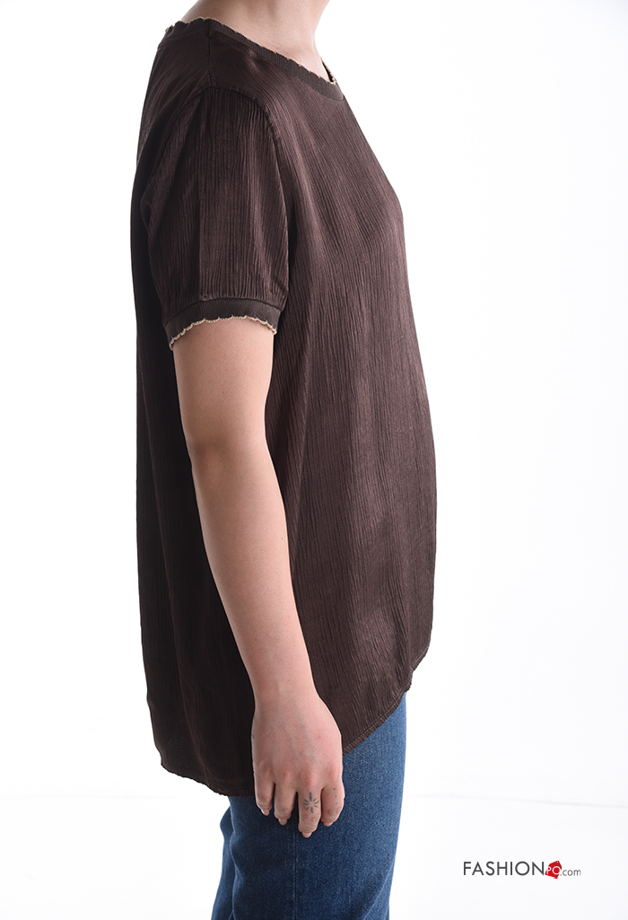 Blusa girocollo lurex maniche corte