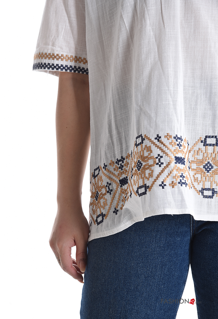 Blusa in Cotone maniche corte Fantasia ricamata